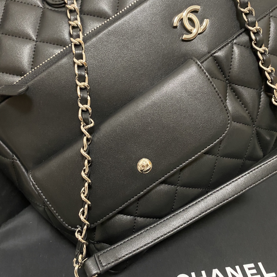 kaufen Chanel Calfskin Quilted Ultra Pocket Shopping Tote Navy Tasche
