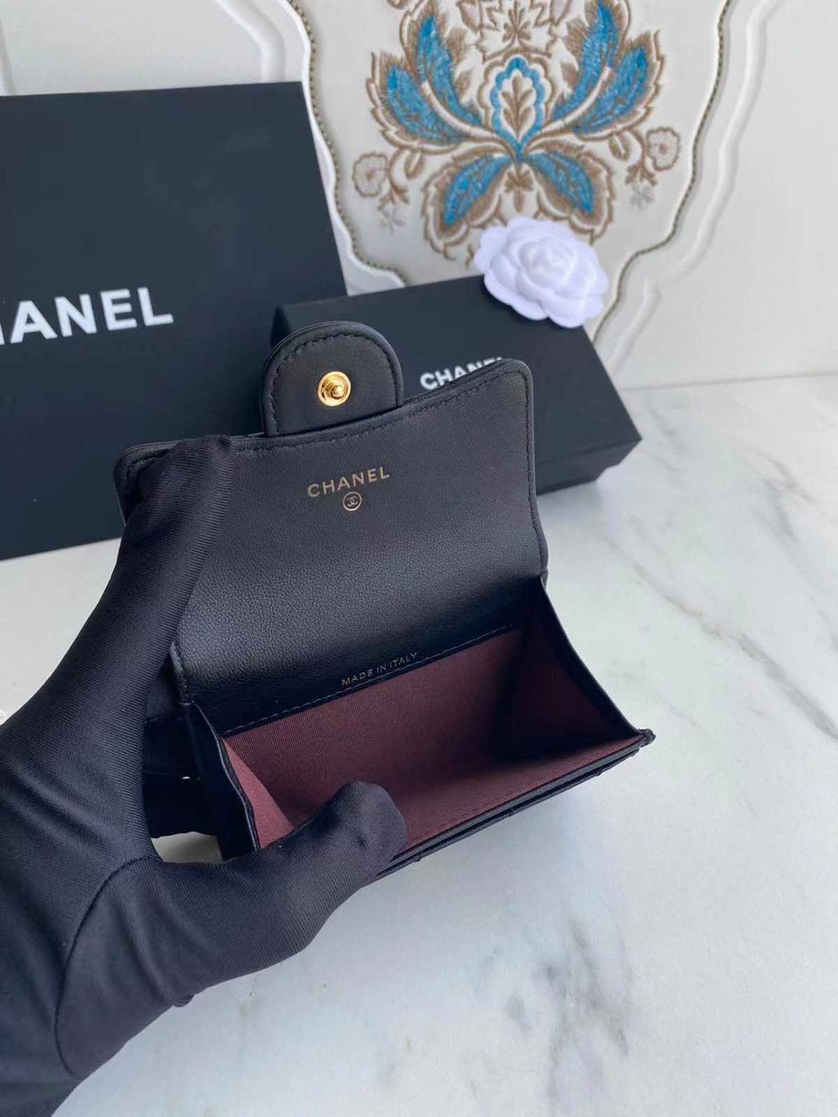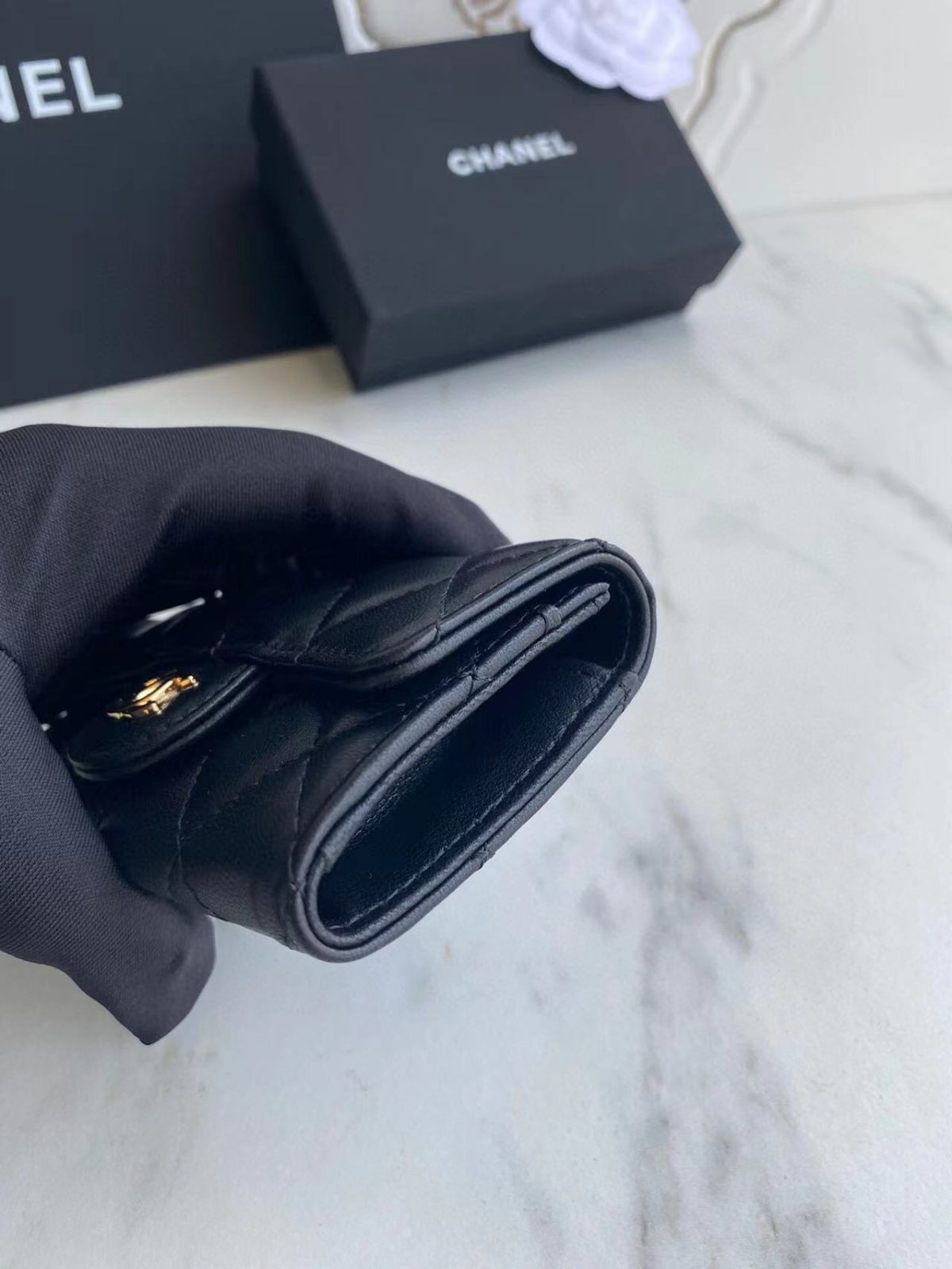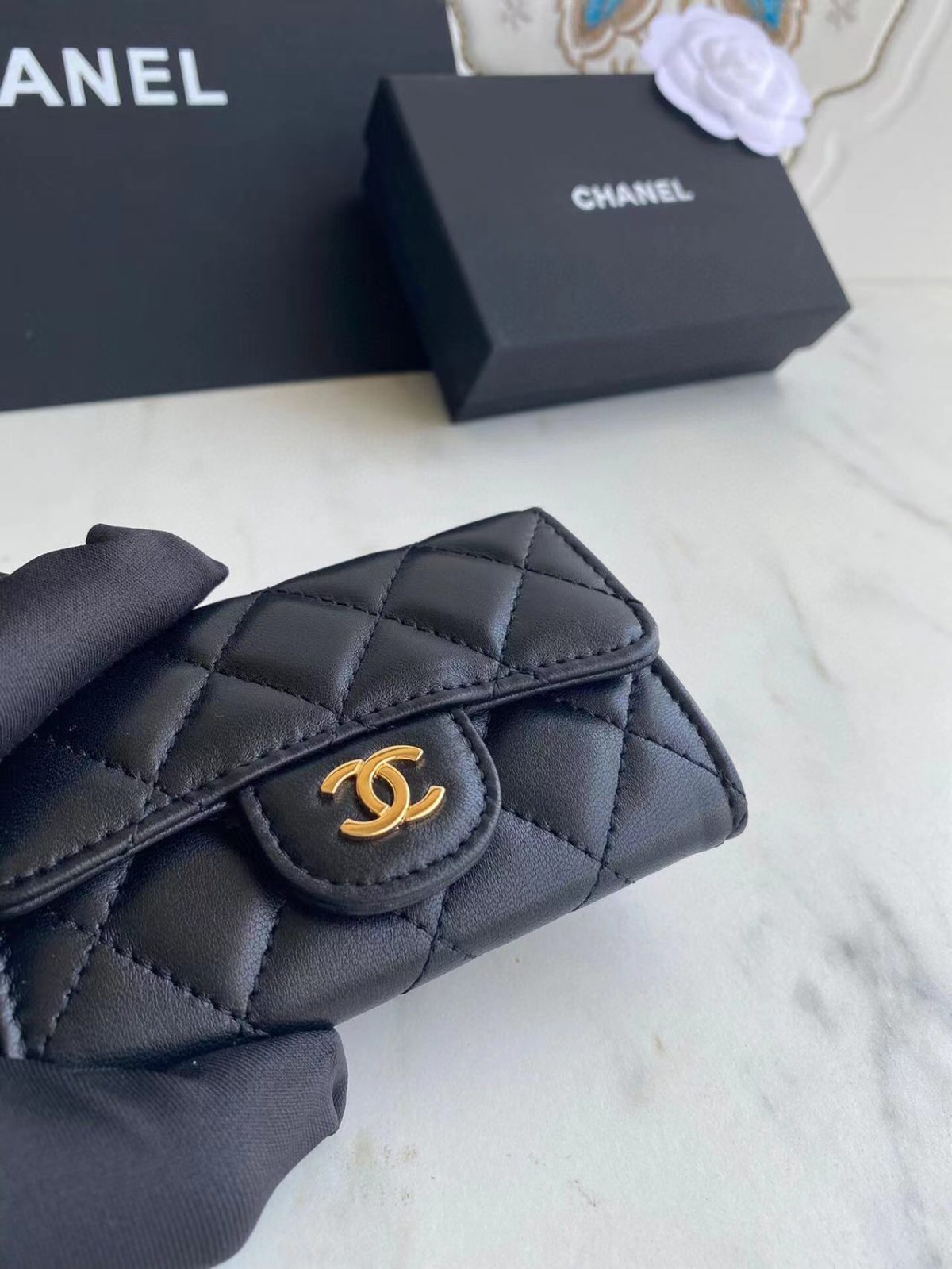 kaufen Chanel Klassisches Leder in Schwarz Tasche