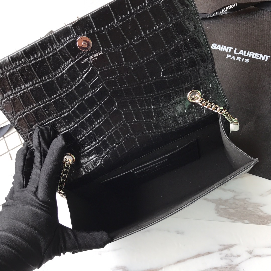 KAUFEN MONOGRAM CHAIN WALLET IN CROCODILE EMBOSSED SHINY TASCHE LEATHER