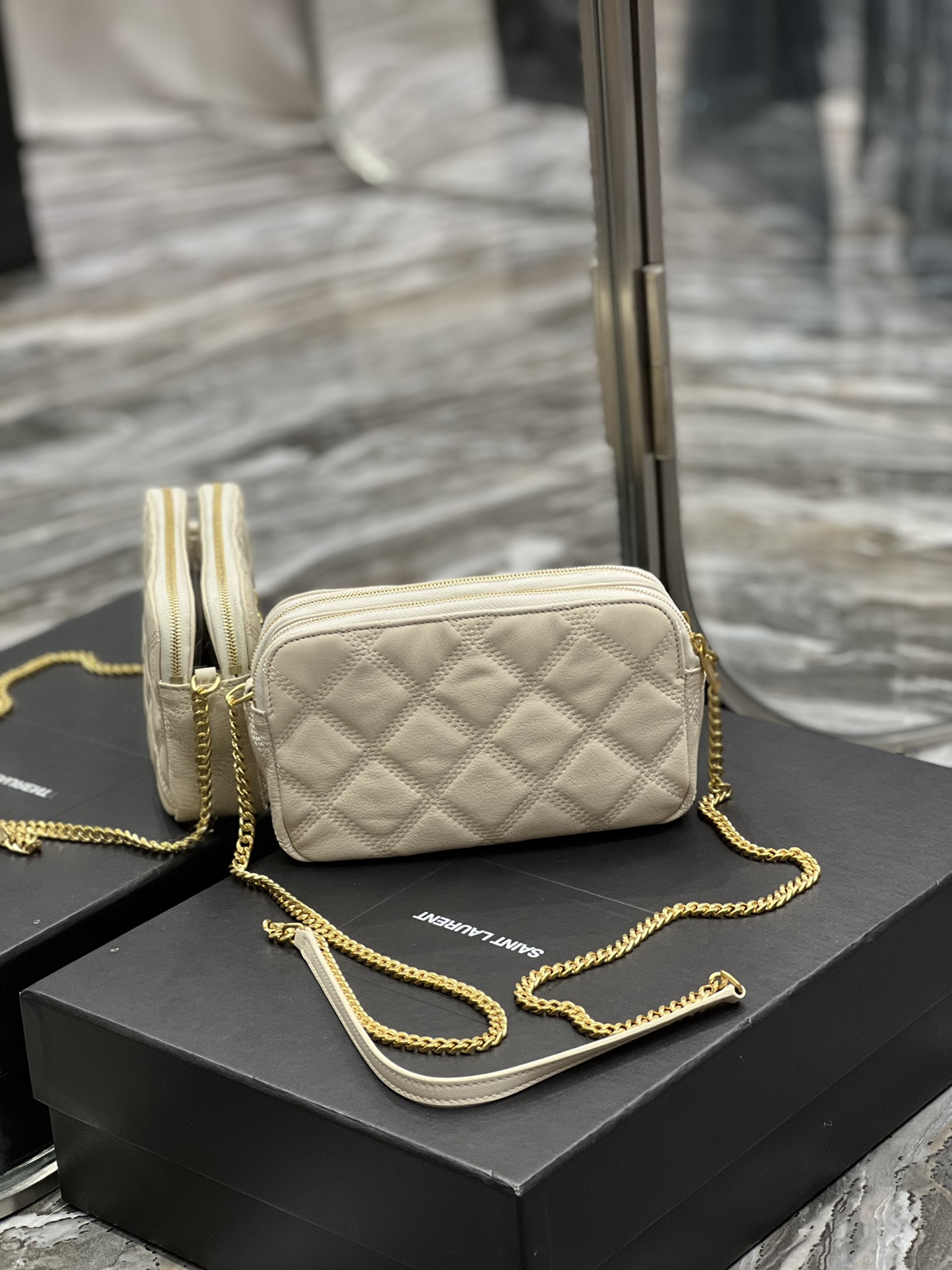 KAUFEN YSL Saint Laurent BECKY double-zip pouch in quilted lambskin TASCHE
